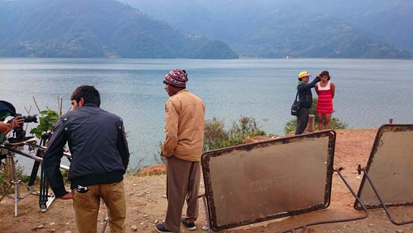Al cabo de una hora ya he salida de la ciudad y esto es una zona rural, apenas hay gente hasta que llego a un recodo del Lago Phewa y me encuentro que están grabando una película o un anuncio. Solo hay una protagonista que hace una escena de baile. Una chica muy guapa baila con el lago Pehwa de fondo.
